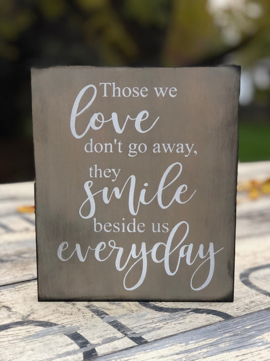 THOSE WE LOVE DON'T GO AWAY, THEY SMILE BESIDE US EVERYDAY- WOOD SIGN