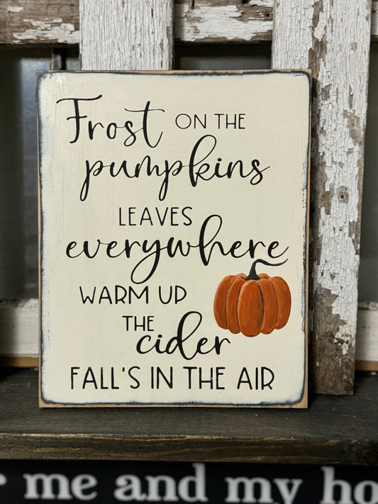 DOUBLE SIDED-FROST ON THE PUMPKINS LEAVES EVERYWHERE WARM UP THE CIDER AUTUMN’S IN THE AIR/HOME SWEET HOME WOOD SIGN