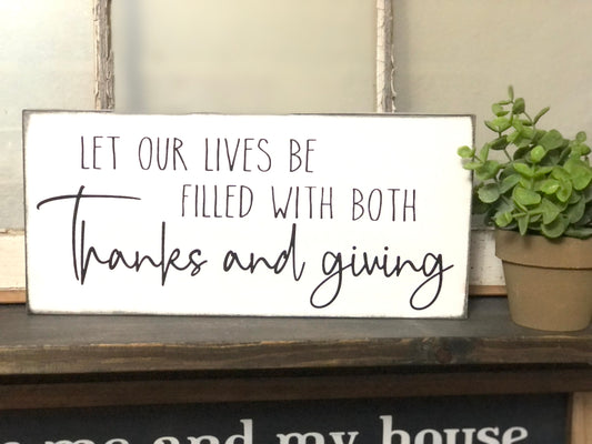 LET OUR LIVES BE FILLED WITH BOTH THANKS AND GIVING - WOOD SIGN