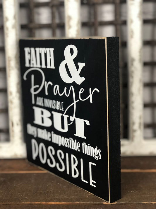 FAITH AND PRAYER ARE INVISIBLE BUT THEY MAKE IMPOSSIBLE THINGS POSSIBLE- WOOD SIGN