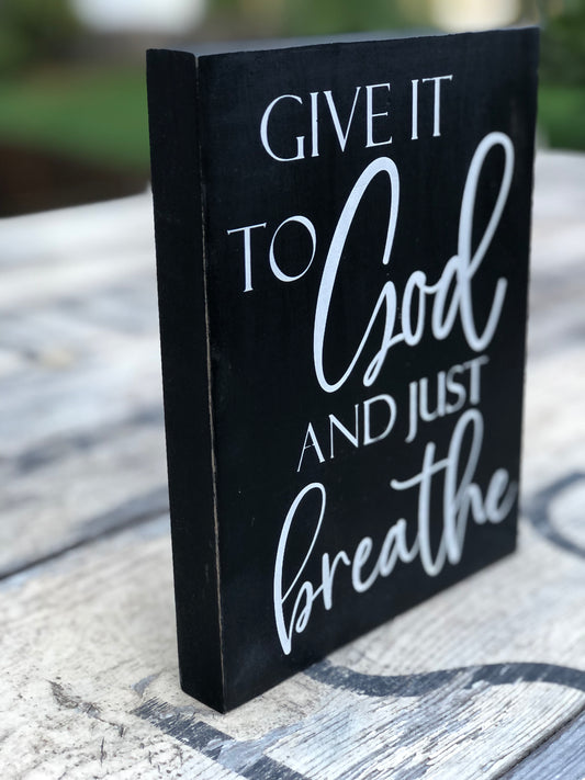GIVE IT TO GOD AND JUST BREATHE - WOOD SIGN
