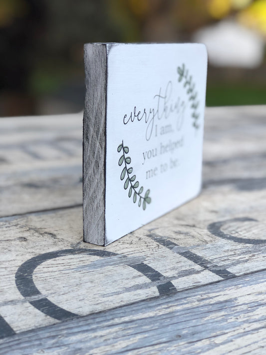 EVERYTHING I AM YOU HELPED ME TO BE WOOD SIGN