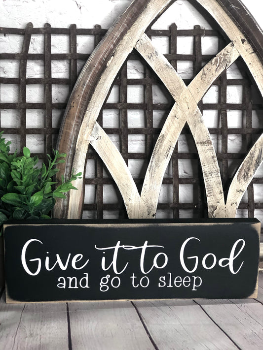GIVE IT TO GOD AND GO TO SLEEP - WOOD SIGN