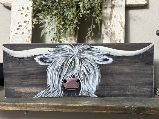 HIGHLANDER COW PRINT WITH HAND PAINTED EMBELLISHMENTS - WOOD SIGN