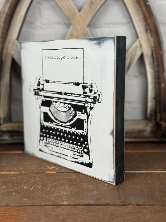 THE BEST IS YET TO COME -VINTAGE TYPEWRITER -WOOD SIGN