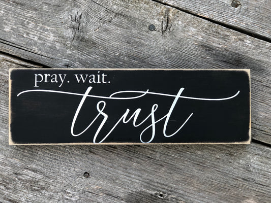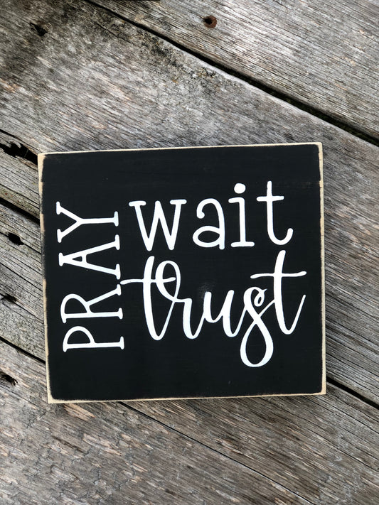 Sold outPRAY WAIT TRUST- WOOD SIGN