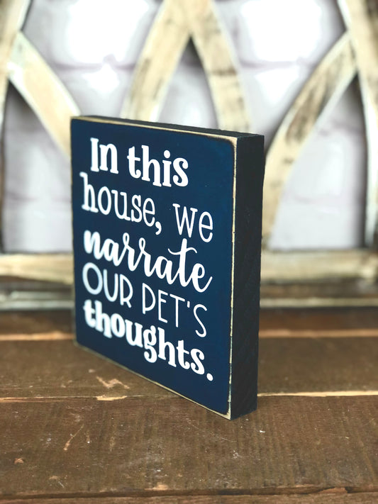 IN THIS HOUSE WE NARRATE OUR PETS THOUGHTS - WOOD SIGN
