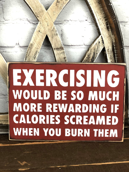 EXERCISING WOULD BE MORE REWARDING IF CALORIES SCREAMED WHEN YOU BURNED THEM- WOOD SIGN