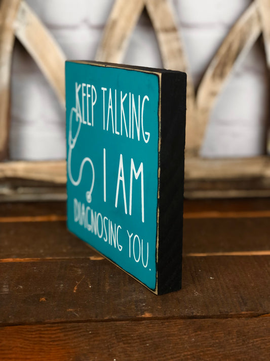 KEEP TALKING I’M DIAGNOSING YOU - WOOD SIGN