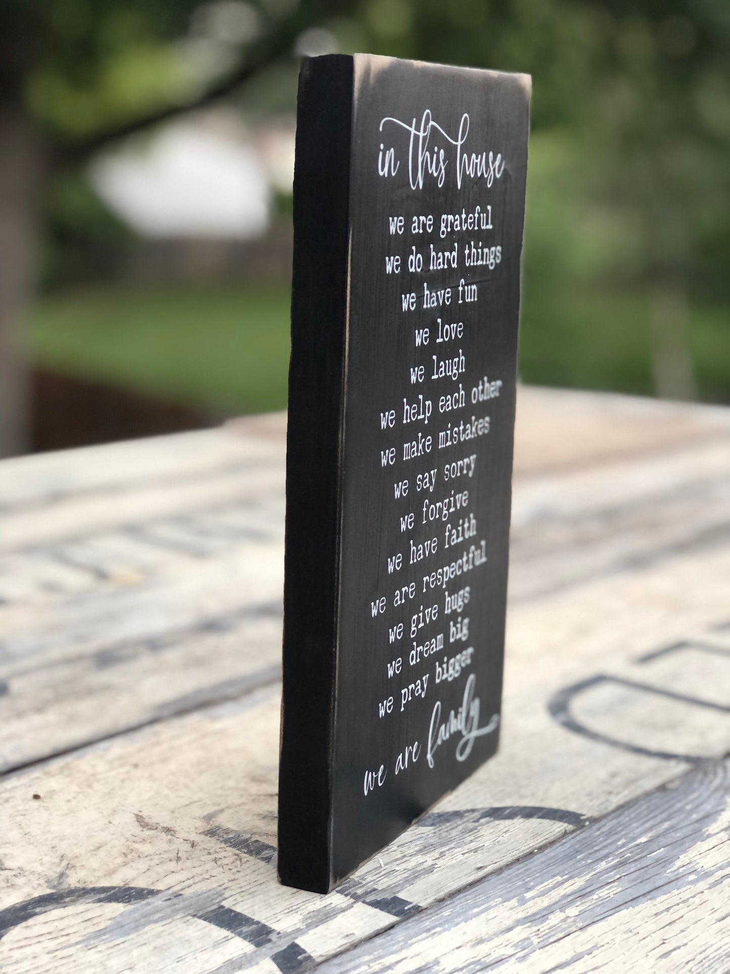 IN THIS HOUSE, WE ARE GRATEFUL, DO HARD THINGS, HAVE FUN, LOVE- WOOD SIGN